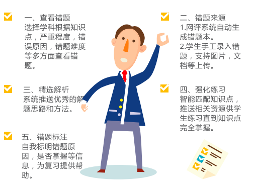 2個(gè)性化標(biāo)注錯(cuò)題 錯(cuò)題本中的錯(cuò)題,學(xué)生可以自主標(biāo)注錯(cuò)題嚴(yán)重程度、錯(cuò)題原因,是否掌握,為復(fù)習(xí)提供檢索依據(jù)