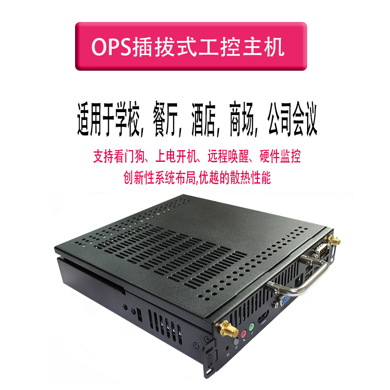 產品詳細介紹 本產品是一款超薄的OPS 整機,基于 Intel 第5代Mobile U系列超低功耗平臺的 CPU,支持 WinXP、Win7、Win8、Win10 和 Linux 等操作系統; 整機采用合金材質并做陽極黑色氧化,外型小巧、超薄、結構簡單,I/O和擴展接口豐富,且配備OPS插槽,是一款為電子教育白板和會議白板量身打造的產品。