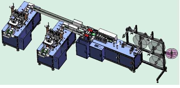 產品詳細介紹1.1設備概述: 本機主要用于平面式口罩自動成型:整卷布料放卷后經過滾輪驅動,布料通過自動折邊、包邊;鼻梁條整卷牽引開卷,定長裁切后導入至包邊布料中,雙邊通過超聲焊接至封口,再經過超聲側向封口,通過切刀裁切成型;通過流水線將口罩輸送至兩個口罩耳帶熔接工位,通過超聲焊接最終口罩成型; 1.3設備安裝與配置需求 (1)設備尺寸:6500mm(L)×2200mm(W)×1900mm(H); (2)外觀顏色:鈑金RAL7035(德富萊),無特殊說明時按照此標準; (3)設備重量:≤5000kg,地面承重≤500KG/m2; (4)工作電源:設備三相五線380/220V,50HZ,額定功率約10KW; (5) 壓縮空氣:0.5~0.7 MPa,使用流量約300L/min; (6) 使用環境:溫度10~35℃、濕度5-35%HR,無可燃性、腐蝕性氣體,無粉塵(潔凈度不低于10萬級)。 (7)操作人員:1人 |