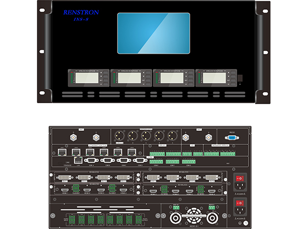 產品詳細介紹產品綜述:INS-8是我司研發的一款集擴聲系統、矩陣切換系統、音頻DSP系統、無線麥克風系統、中控系統、網絡交換系統于一體的智能會議管理一體機,該設備有很強的信號處理能力,同時將原本眾多的專業設備集成到一體,相當于會議室只需一臺INS-8就可以直接開會;通過觸摸屏可類似中控系統一樣直接一鍵開啟設備和切換信號,大大方便了會議室的使用;也極大的簡化了機柜空間;該設備是將成為現代會議室的主流應用設備; 產品特性: 集成集中控制系統、矩陣切換系統、音頻DSP處理系統、無線發言系統、網絡控制系統、擴聲系統; 提供觸摸屏交互控制、GUI控制、集中控制; 觸摸屏可直接進行矩陣切換、音頻DSP處理及切換,設備開關等一系列中控操作功能; 矩陣切換模塊支持多種視頻信號格式(HDMI、DVI、VGA、HDBaseT、AV、Fiber光纖、SDI)的無縫切換; 矩陣切換模塊可配置FCM系列板卡; 無線發言模塊具備4路無線手持麥克風獨立輸出,也可以混音輸出; 音頻DSP處理模塊支持8進8出且具備自適應反饋抑制器、回聲消除、噪聲門、限幅器、16段參量均衡等音頻處理功能; 擴聲系統支持2*400W,每通道8歐姆的功率輸出; 中控部分提供4路RS232雙向控制,8個紅外控制口、8個Relay口、8個I/O口,且矩陣模塊和音頻處理模塊自動接入中控com口,實現一體化集中控制; 網口控制模塊提供6口百兆交換機,可通過任意一個網口控制本設備; 技術參數: 控制部分 控制本設備端口:網口(RJ45)*6、RS232(DB9)*1; 控制其他設備端口: RS232(DB9)*4、I/0*8、Relay(2pin)*8、IR(2pin)*8、RS232(7pin)*3; 網絡協議:TCP/IP; 音頻DSP及擴聲部分 8路線路輸入(3pin)*8路線路輸出(3pin); 失真度( T.H.D ):<0.007% @0dBu 21Hz-19Khz; 信噪比(S/N):103db; 噪聲門、壓限器、16段參量均衡、反饋抑制(AFC)、混音器等等; 功放:2*400,8Ω; 無線麥克風部分 頻率范圍:500-800MHz; 頻帶寬度:50MHz; 頻道間隔:250KHz; 信噪比(S/N):>109dB 失真度( T.H.D ):<0.51% 頻率響應:41Hz-17KHz 頻率穩定度: ±0.006% 矩陣切換部分 信號帶寬:12.8Gps; 傳播延時:6ns( ±1ns ); 波特率:9600bps; 信號切換速率:≤110ns; 本設備不包括板卡,板卡可配置FCM系列板卡; 其他: 電源:220VAC, 50/60Hz; 相對濕度:11%~89%; 工作溫度:-1~+49℃ 尺寸(W*H*D):436.7x221.6x340.1(MM); 重量:16.6KG;