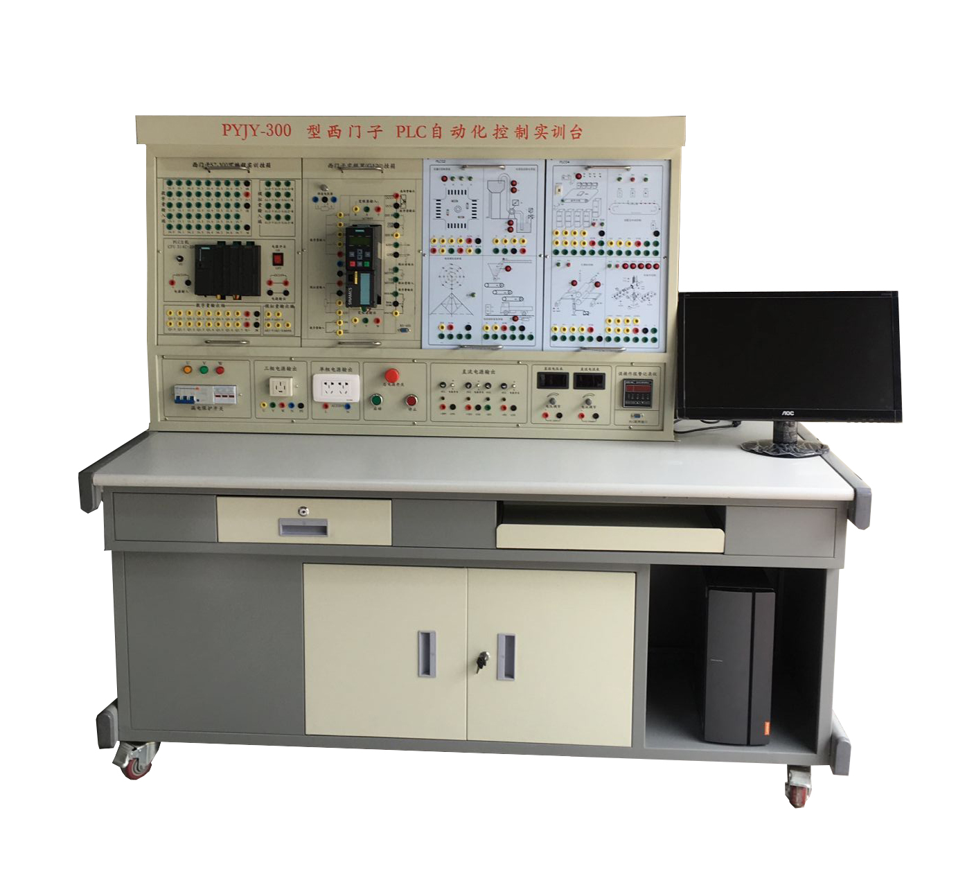 “PYJY-300型西門子PLC自動化控制實訓臺”是根據國家勞動和社會保障部職業技能鑒定中心為維修電工技師、高級技師的職業培訓與技能鑒定而研制的,它集PLC、變頻器、觸摸屏、模擬實訓對象、仿真軟件、組態軟件于一體。適合PLC可編程控制、變頻調速控制實訓教學及技師技能鑒定考核。