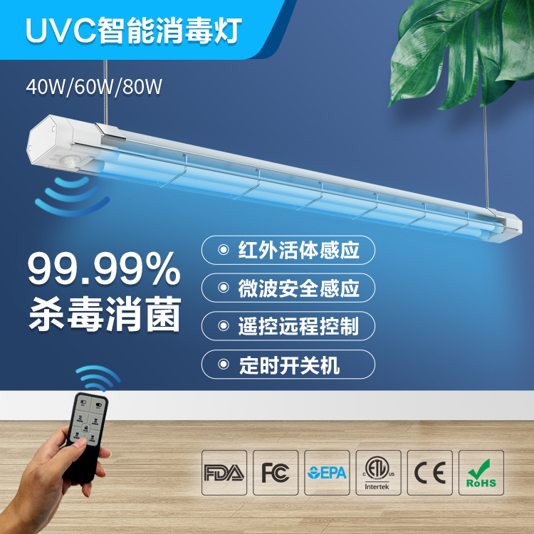 產品詳細介紹 應用范圍: 醫院/學校/商場/公共場所 功率:2x30W 輸入電壓:220-240V 燈管類型:UVC 波長:254nm 安裝方式: 吸頂裝 吊裝 壁掛 控制器:無線控制 時間:30/60/90/120 分鐘 傳感器:微波+ 紅外 尺寸:L1009 x W67 x D54mm 認證: ETL FCC FDA CE |