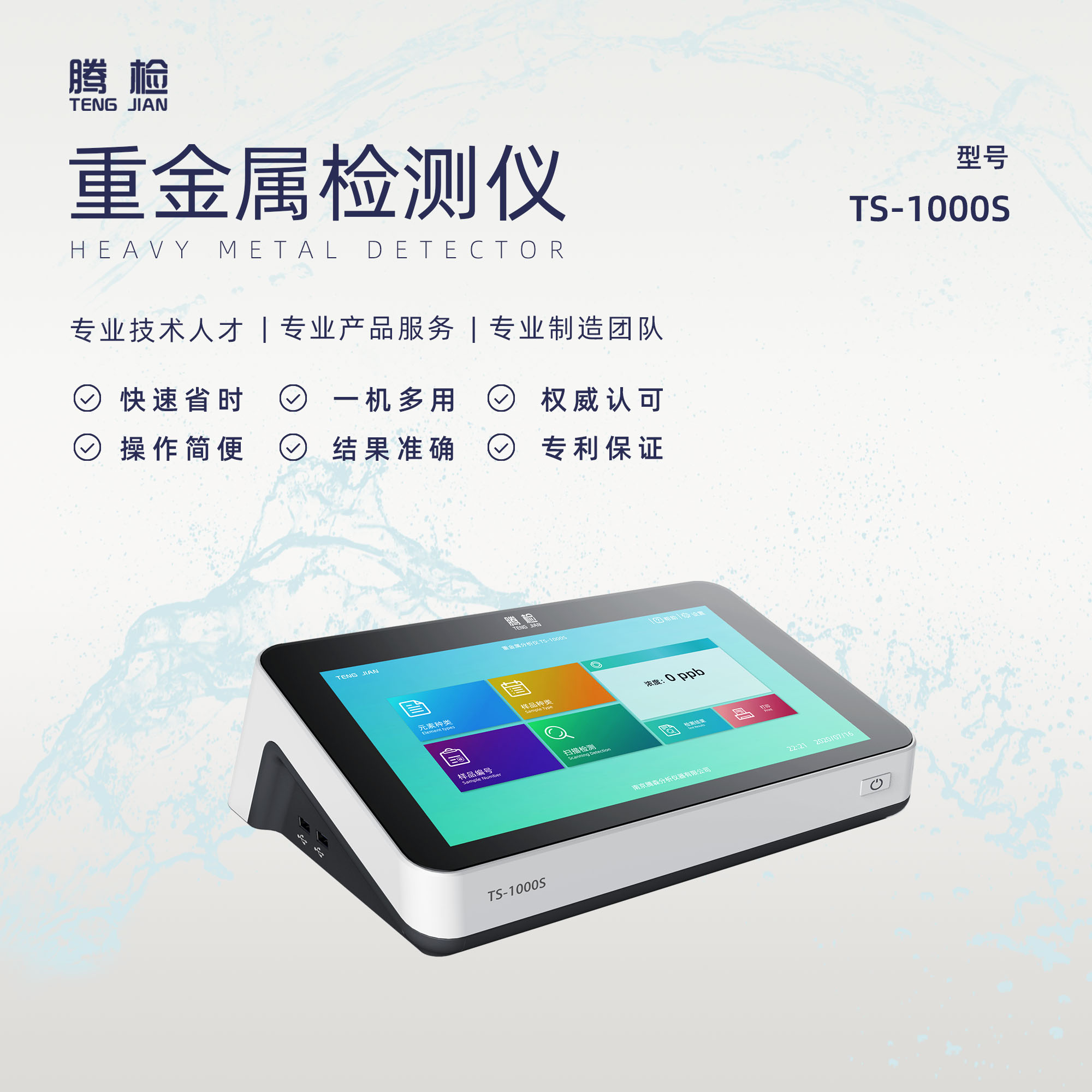 產品詳細介紹產品介紹: TS-1000S重金屬檢測儀采用電化學陽極溶出伏安法。檢出限低(可達ppb級),性能穩定,便于攜帶。同時配備自主研發的快速樣品前處理流程,有效解決了樣品前處理耗時問題,大幅減少檢測所需的樣品量,有利于樣品處理通量的提高。配備適用自主研發的絲網印刷電極,即用即拋充分提高檢測效率。 檢測項目:鉛、鎘、銅、鋅、汞、砷、六價鉻、鋁等元素 適用范圍:稻谷、糙米、大米、小麥等糧食樣品、水產品、蔬菜、水質、土壤、乳及乳制品、茶葉、飼料、面制品等。 儀器參數: 檢測方法 電化學 檢出限 0.01mg/kg 線性范圍 0.05μg/L-2000μg/L 測試環境 0-40oC 檢測時間 樣品定量測試≤25min 檢測樣品數量 可1-8個樣品同時檢測 重復性 ≤5% 穩定性 ≤5% 前處理 常溫提取,無需高溫、高壓等危險操作 測試方式 微量體系,無需復雜攪拌裝置 檢測模塊 無需外部連接檢測模塊,在儀器上即可完成檢測 數據接口 以太網接口、USB2.0接口 檢測時長 內置鋰電池,至少滿足3-4小時戶外流動應急檢測 存儲容量 8G內存,以便存儲日常檢測數據 打印 自帶打印功能 電極 自帶一次性絲網印刷電極,無需打磨、清洗電極,可拋棄 主機重量 ≤10kg 軟件模式 直接定量 軟件結果輸出格式 測試報告自動生成,可輸出pdf格式,可自動保存 主機電源 220V 顯示屏 液晶顯示屏,可觸屏操作
