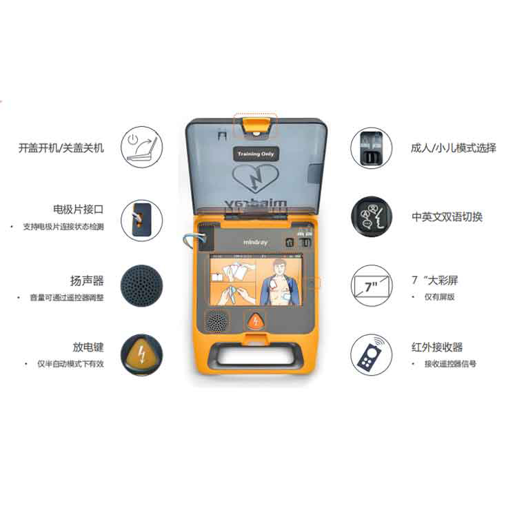 訓練機作為AED急救的培訓器具,邁瑞AED自動體外除顫儀訓練機,和真機AED外形尺寸,操作使用一樣,具有:智能易用,可靠耐用,7寸大屏,動畫提示,聲音提示,教學培訓方便等特性。 |