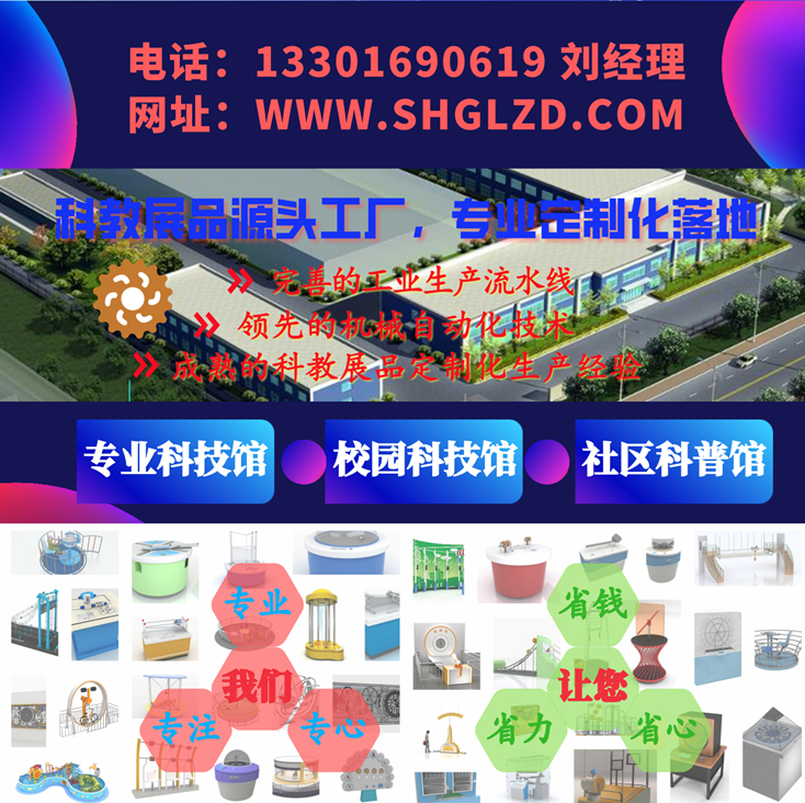 產(chǎn)品詳細介紹 上海慣量自動化有限公司是一家依托于完善的工業(yè)生產(chǎn)流水線及成熟的機械自動化技術(shù)水平、專注于科教展品定制化設(shè)計生產(chǎn)的專業(yè)化設(shè)備制作公司,為科普產(chǎn)品工廠聯(lián)盟的理事單位,主要專業(yè)生產(chǎn)市縣級科技館展品和校園、社區(qū)科技館科普互動設(shè)備。產(chǎn)品質(zhì)量過硬,多次受到有關(guān)領(lǐng)導(dǎo)、專家、教授的好評與贊賞,一次性通過驗收。產(chǎn)品經(jīng)過不斷地創(chuàng)新、改進完善,它將以更優(yōu)良的性能、優(yōu)異的品質(zhì)、高標(biāo)準(zhǔn)的配置及操作簡單、功能齊全、優(yōu)惠的價格和良好的售后服務(wù)質(zhì)量奉獻給廣大客戶。 公司占地面積數(shù)千平,擁有剪板機、切割機、激光雕刻機、折彎機、刨床、沖床、鉆銑床、數(shù)控車床、木工推臺鋸、木工雕刻機、打包設(shè)備等,形成完善的工業(yè)化生產(chǎn)流水線;公司擁有噴漆噴塑車間及設(shè)備,通過國家 部門認(rèn)可的完整排放標(biāo)準(zhǔn)與手續(xù),可以本公司全程完成生產(chǎn)制作,提高生產(chǎn)效率,保證訂單展品的及時發(fā)貨交付。