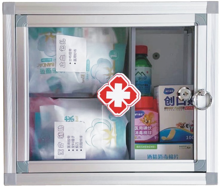 急救箱3 材質:鋁合金+中纖板+亞克力面板 型號:LZ-JJ-1C 尺寸:350*140*420mm 清創消毒:酒精棉球1瓶,碘伏棉球1瓶,碘伏棉棒60支,酒精棉片1盒,過氧化氫溶液1瓶 止血包扎:卡扣式止血帶1個,創口貼1盒,醫用紗布2包,紗布繃帶2包,自粘彈性繃帶2卷,三角繃帶1包 醫療輔助:醫用膠帶1卷,塑料鑷子1個,脫脂棉球1包、剪刀1把 急救防護:人工呼吸面罩1個,一次性檢檢查手套2雙、急救毯1包,醫用外科口罩 診斷治療:瞬冷冰袋1包,風油精1瓶,體溫計1個 腐蝕傷處理:硼酸溶液1瓶,碳酸氫鈉1包, 應急用品:救生哨1只,手電筒1個,急救手冊1本,急救卡2張,配置清單1份