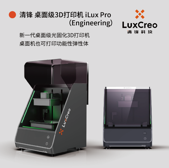關于清鋒科技(LuxCreo) 清鋒科技(18600573362)是一家專注于3D打印設備、軟件、材料研發,致力于改變產品開發和生產方式的數字化3D智造商。團隊成員匯聚了清華大學、哈佛大學、佐治亞理工學院、賓夕法尼亞大學、劍橋大學等學府的高端技術人才和高管人才。團隊研發出適配于不同行業的高性能材料體系(彈性體材料、韌性材料、齒科材料、耐高溫材料等),依托自主研發的Lux系列DLP光固化3D打印機、iLux Pro系列LCD桌面級光固化3D打印機和配套軟件, 為鞋類、齒科、醫療、消費、工業、科研等行業創新升級提供解決方案,打造兼具定制化和批量化的新型數字化制造模式及生態閉環,讓制造更簡單!www.luxcreo.cn
