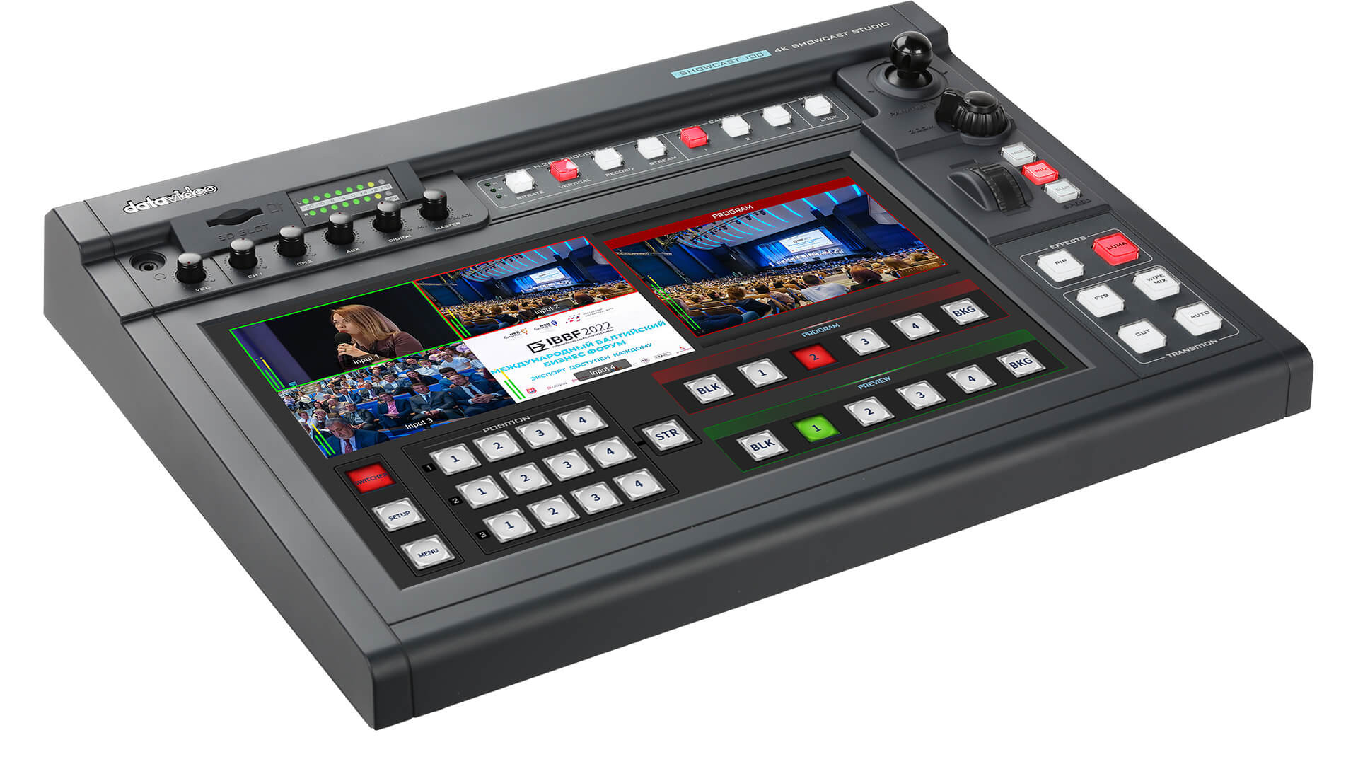 產品詳細介紹全新4K 可視化觸控一體機SHOWCAST 100, 集切換、字幕、云臺攝像機控制、網絡直播、觸控屏幕、視頻錄制、混音7大功能于一體。 14寸觸摸控制屏,作為簡單、方便、自然的一種人機交互方式,其快速直觀的菜單選擇及按鍵操作,幫助使用者打造生動的影像效果。 4K 60p 四通道可視化觸控一體機 觸控面板讓您可以輕松直觀地執行切換臺的各項功能。 SHOWCAST 100 具有許多功能,均可輕松設定。