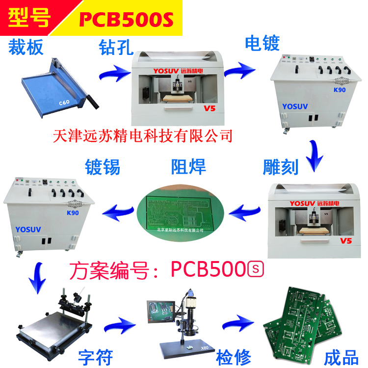 方案配置: 裁板機(jī):型號 C60 雕刻機(jī):型號 V5 過孔電鍍機(jī):型號K90 PCB曝光機(jī):型號E60 字符絲印機(jī):型號S6 視頻檢測儀:型號X60 放大鏡:型號SUV100 配件:雕刻刀 1套/10把 雕刻鉆1套/10把 耗材:覆銅板10片 規(guī)格:標(biāo)配