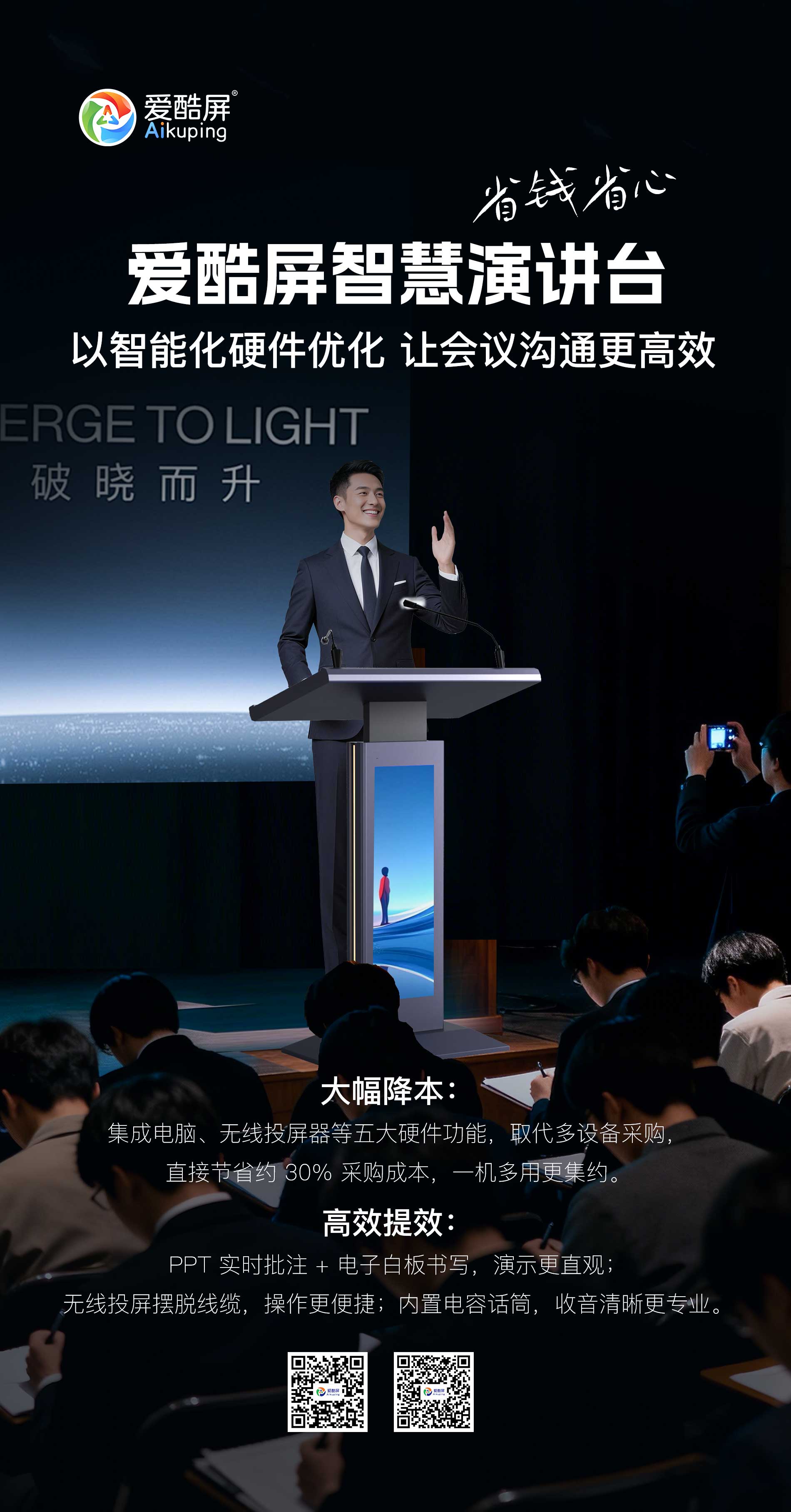 愛(ài)酷屏無(wú)線投屏自動(dòng)升降教學(xué)演示演講臺(tái)