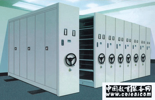 根據(jù)庫房特征進(jìn)行合理布局,高度利用空間,采用多節(jié)多聯(lián)安放在固定的軌道上形成一整體,用手搖或電動方式移動各列存取。