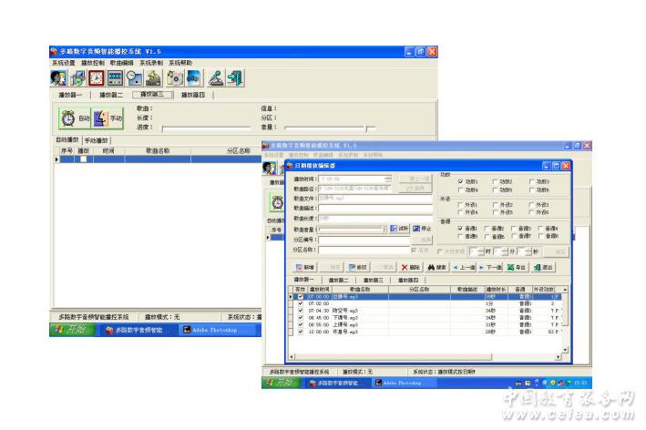 智能可尋址廣播系統電腦同時提供四套節目源,每套節目均可實現對播出的曲目內容、時間、日期自由設定;具有自動分區廣播和兼容多路外接媒體功能,達到任意選擇播放;硬盤式存儲曲目,采用開放式音源軟件平臺,用戶可以任意添加/存錄曲目;線路能同時傳輸八種音源,線路傳輸采用小信號調制后進行傳輸,在終端解調后并進行功率放大;機設有六路外控功放、六路外控音源,每路外控功放與外控音源均能編程獨立操作。