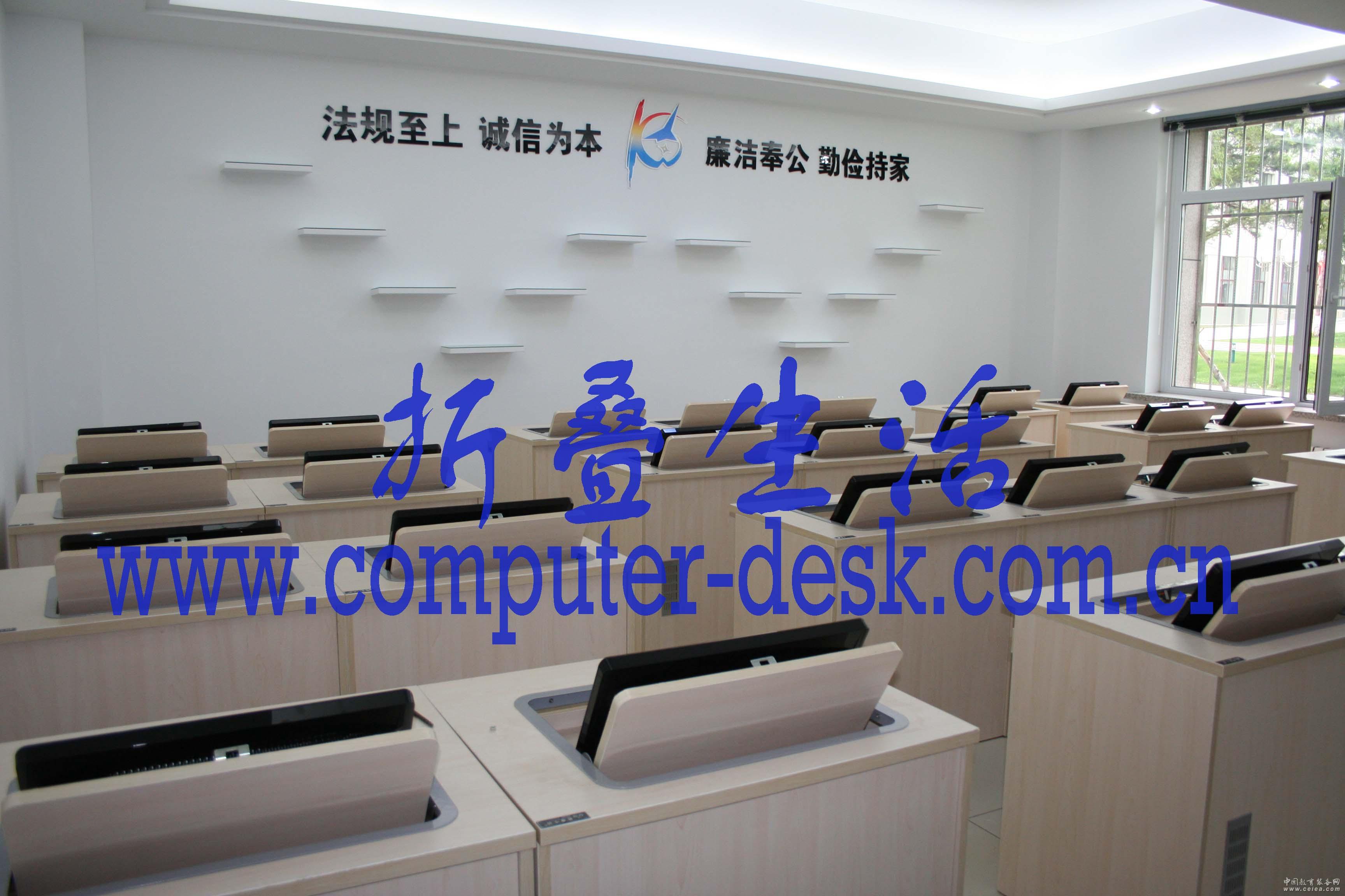 3、顯示器完全翻轉起來后,翻轉板只高出桌面15公分左右。不影響學生與講臺上的老師進行目光交流。