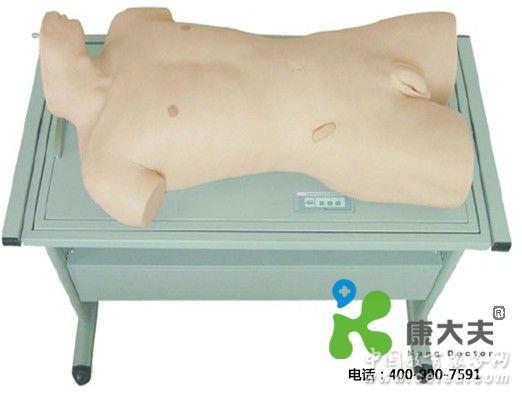 ■ 功能實驗臺可操作仿真病人模擬左、右側臥位,行腹部移動性濁音叩診訓練。 ■ 功能實驗臺可操作仿真病人取斜坡臥位或左側臥位,行腹腔穿刺; ■ 穿刺有明顯落空感,可抽出模擬腹腔積水;