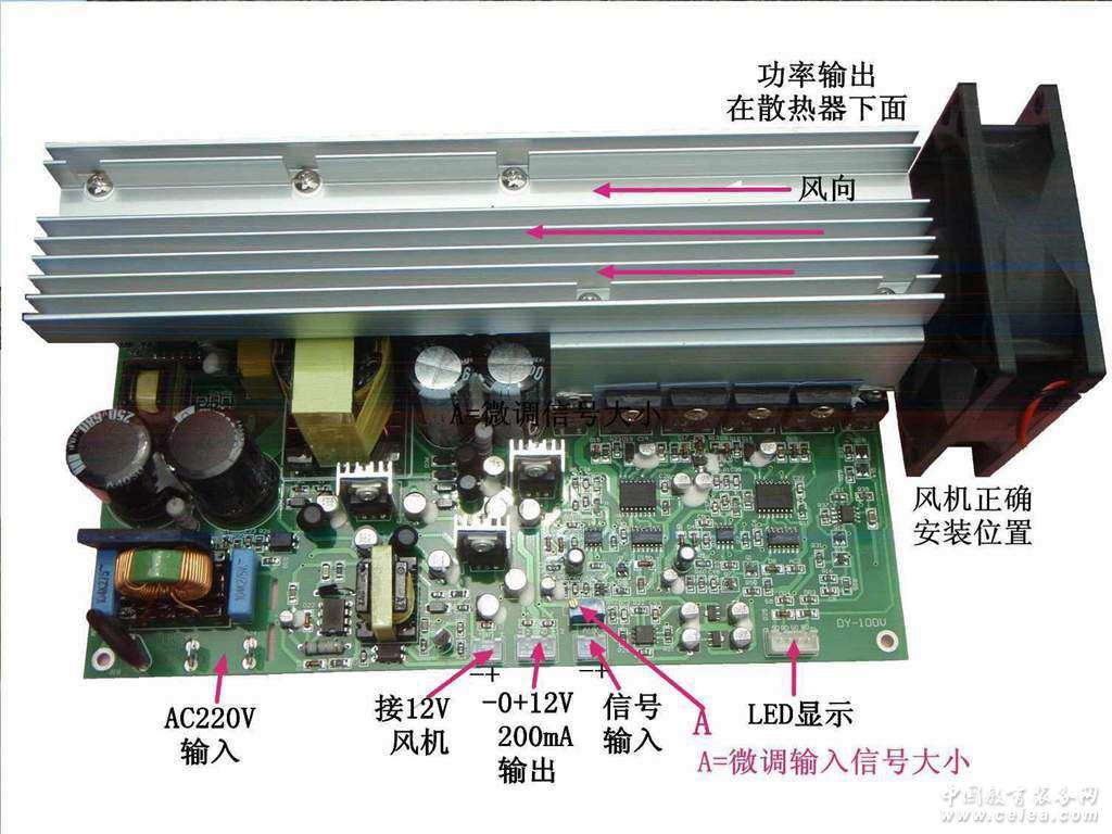 輸入、輸出接口: 工作狀態(tài)LED顯示接口 用于顯示工作、信號、自動保護狀態(tài)指示。 12V200mA風機電源輸出 用于外接散熱風機 + - 12V 200mA輸出 用于您或許需要配套的前級板電源. 智能風機控制: 當散熱器溫度上升到50度時,風機開始工作。低于50度時,風機停止工作。