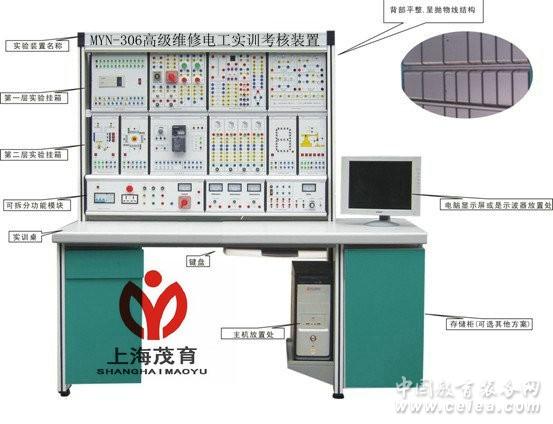 產品詳細介紹一、概述 根據勞動和社會保障部頒發的“工人等級標準”和“職業技能鑒定”的要求而設計的,MYN-306高級維修電工實訓考核裝置適用于《初級維修電工》、《中級維修電工》和《高級維修電工》教材要求的電氣控制電路,通過裝置配備的PLC可編程控制器和變頻調速器及相應實訓模塊的訓練,快速掌握課程要求的實際應用技術和操作技能,具有針對性、實用性、科學性和先進性,MYN-306高級維修電工實訓考核裝置能滿足中、高級維修電工考核大綱的要求,是各勞動職業技能鑒定部門、大中專院校、技校中、高級維修電工技能考核的理想設備。 二、技術性能 1.輸入電壓:三相四線制380V±10% 50Hz 2.工作環境:環境溫度范圍為-5~+40℃ 3.裝置容量:<1KVA 4.安全保護:漏電動作電流≤30mA 過流保護、熔斷器保護 5.外形尺寸:1650mm×660mm×1740mm 三、實訓裝置的基本配置及功能: 本實訓裝置由實訓桌、實訓掛箱、實訓器材等組成。 3.1 實訓桌 3.1.1 實訓桌主體結構為鋁合金; 3.1.2 存儲柜:放置工具及實驗模塊,350mm×700mm×700mm; 數量:2個 3.1.3:桌面為防火、防水、耐磨高密度板,造型美觀大方,堅固耐用,前部厚度為50mm。 3.1.4:功能模塊主體結構采用鋁合金,可脫離實驗臺單獨作為一個實驗儀器使用,實驗掛箱主體結構為鋁合金(避免采用鐵結構,笨重不方便學生操作),結構及大小尺寸統一。 3.1.5:防塵裝置及標題架:標題架1230mm×140mm×80mm;1套。實驗臺在使用時,防塵裝置可卷到標題架內,實驗臺未在使用時,防塵裝置可把實驗模塊全部保護,在裝置的下方是一條長1.米多的磁條 3.1.6:電腦:聯想揚天A4600K T2900D M7150 3.2 功能模塊(每個功能模塊可脫離實驗臺單獨作為一個實驗儀器使用) 3.2.1:三相電源實驗儀器:外部以采用3mm鋁合金長方體為主體結構,大小為300mm×160mm×165mm。三相380V輸出、直流220V輸出。三相380V輸出、直流220V輸出。設有外殼接地保護、缺相指示、急停保護、多次熔斷絲保護、漏電保護等可脫離實驗臺單獨作為一個實驗儀器使用。獨立編號為T01 3.2.2:混合電壓輸出實驗儀器:外部以采用3mm鋁合金長方體為主體結構,大小為300mm×160mm×165mm。每個輸出接口有3mm和6mm的兩種,24V直流穩壓可調輸出,指針電表指示,設有正負極提示LED,防止電源極性接反;0~240V交流輸出,又可作雙9V、雙12V、雙18V輸出,。可脫離實驗臺單獨作為一個實驗儀器使用獨立編號T08。 3.2.3:恒流源:外部以采用3mm鋁合金長方體為主體結構,大小為300mm×160mm×165mm。每個輸出接口有3mm和6mm的兩種,0-20mA-500mA。分5檔,數顯電表顯示。含單次脈沖,開關電源正負12V正負5V,后背為六孔220V插座�?擅撾x實驗臺單獨作為一個實驗儀器使用獨立編號T29。 3.2.4:信號發生器:外部以采用3mm鋁合金長方體為主體結構,大小為300mm×160mm×165mm。每個輸出接口有3mm和6mm的兩種,1、波形有正弦波、方波、三角波;2、衰減級度0—20db—(40db);3、設有頻率計一只,六位數顯,測量范圍可達0-8M,支持外測�?擅撾x實驗臺單獨作為一個實驗儀器使用獨立編號T11。 3.3:實驗模塊: 3.3.1: 觸摸屏實驗模塊:外部以采用3mm鋁合金長方體為主體結構,大小為300mm×300mm×110mm。該觸摸屏是一套以嵌入式低功耗CPU為核心(ARM CPU,主頻400MHz)的高性能嵌入式一體化觸摸屏。該產品設計采用了7英寸高亮度TFT液晶顯示屏(分辨率800×480),四線電阻式觸摸屏(分辨率1024×1024)。3.3.2:變頻器實驗模塊:外部以采用3mm鋁合金長方體為主體結構,大小為300mm×300mm×110mm。采用三菱FR-D720S0-0.4K,輸入輸出接口引至面板,電源獨立開關控制。 3.3.3:PLC主機實驗模塊:外部以采用3mm鋁合金長方體為主體結構,大小為300mm×300mm×110mm。采用FX1N-40MR,輸入輸出接口引至面板,電源獨立開關控制。 3.3.4:通訊模塊:采用三菱通訊模塊,與變頻器通訊使用 3.3.5:指令編程模塊:外部以采用3mm鋁合金長方體為主體結構,大小為150mm×300mm×110mm。 有5個大指示燈的紅色黃色綠色白色各不少于3個,按鈕不少于8個開關不8個輸入輸出借口全部引至面板,接口采用四種不同顏色。 3.3.6:四節傳送帶的控制:外部以采用3mm鋁合金長方體為主體結構,大小為150mm×300mm×100mm,面板顏色為彩色,至少3種顏色以上,接口插座采用四種不同顏色。 3.3.7:電動機的自動控制:外部以采用3mm鋁合金長方體為主體結構,大小為150mm×300mm×100mm,面板顏色為彩色,至少3種顏色以上,接口插座采用四種不同顏色。 3.3.8:五相步進電機控制:外部以采用3mm鋁合金長方體為主體結構,大小為150mm×300mm×100mm,,面板顏色為彩色,至少3種顏色以上,接口插座采用四種不同顏色。 3.3.9:多層電梯的控制:外部以采用3mm鋁合金長方體為主體結構,大小為150mm×300mm×100mm,面面板顏色為彩色,至少3種顏色以上,接口插座采用四種不同顏色。(輸入輸出接口不少于20個) 3.3.10:十字路交通燈:外部以采用3mm鋁合金長方體為主體結構,大小為150mm×300mm×100mm,,面板顏色為彩色,至少3種顏色以上,接口插座采用四種不同顏色。(輸入輸出接口不少于12個) 3.3.11:天塔之光的控制:外部以采用3mm鋁合金長方體為主體結構,大小為150mm×300mm×100mm,面板顏色為彩色,至少3種顏色以上,接口插座采用四種不同顏色。(輸入輸出接口不少于14個)。 3.3.12:水塔自動供水:外部以采用3mm鋁合金長方體為主體結構,大小為150mm×300mm×100mm,面板顏色為彩色,至少3種顏色以上,接口插座采用四種不同顏色。 3.3.13:液體混合控制:外部以采用3mm鋁合金長