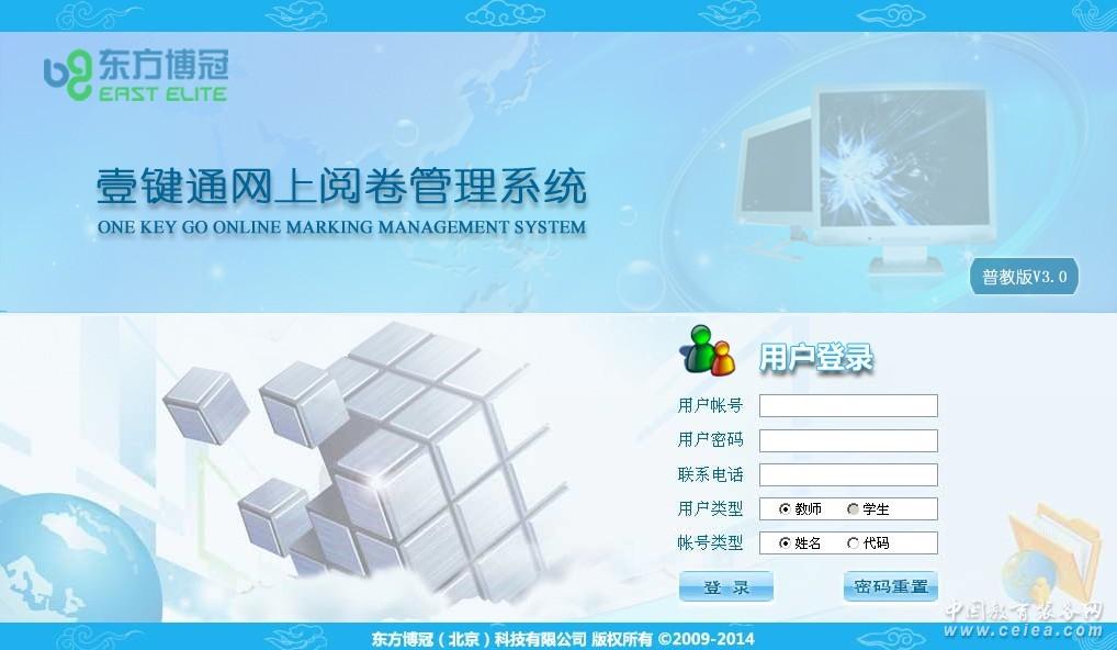 產品詳細介紹一、公司概況 東方博冠(北京)科技有限公司是一家穩(wěn)步成長型的高科技公司,公司管理層由IT及教育界資深人士構成,公司以“融東方智慧,博行業(yè)桂冠”為發(fā)展目標,以“客戶滿意,實現客戶夢想”為經營宗旨,專注于數字校園領域的軟件研發(fā)、應用及推廣,并依靠點點滴滴、鍥而不舍的艱苦追求,使我們成為數字校園領域的探索者與領航者。 公司依托北京航空航天大學計算機學院的技術優(yōu)勢,總部位于北京,在西安、烏魯木齊等多個城市設有辦事處,公司目前擁有員工80多人,80%以上是碩士研究生學歷,并聘請北京航空航天大學、西安交通大學的多位專家作為公司技術顧問。 公司秉承“軟件即服務”的服務宗旨,不斷創(chuàng)新,把客戶的需求放在首位,把對客戶的應用保障放在首位,您的滿意將是我們持續(xù)發(fā)展的源動力。 二、產品介紹 2.1壹鍵通數字校園綜合管理平臺 壹鍵通數字校園綜合管理平臺以規(guī)范教育信息,簡化日常管理方法,提高管理和信息使用效率,減輕管理教職工的工作強度,降低管理成本為設計目標,通過教育信息化引領教育現代化,推進信息技術在教學和管理中的應用,不斷建設和完善數字化校園,壯大教育信息化骨干力量,整體提高全校師資隊伍教育信息化水平,全面實施現代化優(yōu)質教育。本平臺其中涵蓋了管理信息化、教學信息化、辦公自動化、保障信息化、資源共建共享五個方面: 2.1.1管理信息化 管理信息化程度代表著教育管理的現代化水平,通過人事、學籍、預約、文件、在線調查、在線評價等信息化應用,實現學校各項管理工作的信息化,從而加速教育現代化的進程。 2.1.2教學信息化 教學信息化涵蓋新課改、學生素質評價、教學質量分析、試卷分析四個方面,其中信息技術為新課改與學生素質評價的順利進行提供了有力支持與保障,而通過對考試成績的從年級、班級、教師、學生、試卷等不同角度的統(tǒng)計分析,實現教學科學管理,對于提升教學質量、整體管理水平和工作效率有非常重要的意義。 2.1.3辦公自動化 辦公自動化是采用Internet/Intranet技術,以通知、消息、日程、待辦事宜、便簽本、通訊錄等工具為基礎,使學校教職工方便快捷地共享信息,高效地協(xié)同工作;改變過去復雜、低效的手工辦公方式,實現迅速、全方位的信息采集、信息處理,為學校的管理和決策提供科學的依據。 2.1.4保障信息化 保障信息化為學校發(fā)展保駕護航,通過實現對設備、易耗品(辦公用品、清潔用品、維修用品)、車輛、計量收費、在線報修、職工宿舍、學生公寓、圖書、工資等方面的網絡化、信息化管理,為管理人員提供了簡便、快捷的網絡化管理服務,更好的服務學校教育教學。 2.2壹鍵通網上閱卷管理系統(tǒng) 網上閱卷是以電子掃描技術和網絡技術為依托,實現客觀題自動閱卷,主觀題網上評卷的一種現代閱卷方式,既提高了閱卷質量,也提升了閱卷的工作效率。采用網上閱卷進行考試閱卷與統(tǒng)計分析,不但免去了評卷教師對紙質答卷的整理、翻閱、成績計算、成績登記以及成績統(tǒng)計分析等人工操作,也免除了人工流水線閱卷產生的中間等待和誤差。 網上閱卷首先要求設計并印制試卷,考試結束后,再通過高速掃描儀對考生答卷進行掃描,生成圖像文件,存儲在計算機里。對生成的圖像文件通過軟件程序自動進行切割,客觀題由計算機自動閱卷,主觀題由計算機將各題組數據隨機生成發(fā)送給閱卷教師的計算機終端,由閱卷教師通過計算機終端進行閱卷�?陀^題和主觀題閱卷完畢,由計算機自動匯總生成考生的考試成績和分析數據。 壹鍵通網上閱卷管理系統(tǒng)是東方博冠在多年教育信息化產品開發(fā)的經驗基礎上,結合目前閱卷管理工作中存在的問題,將高速掃描技術、圖像切割技術、圖像識別技術和網絡技術引進閱卷過程,以《教育測量學》、《教育統(tǒng)計學》和《教育評價學》為理論依據開發(fā)的計算機網上閱卷系統(tǒng)。系統(tǒng)具有高效、公正、準確等優(yōu)勢,且操作簡便、快捷、統(tǒng)計分析功能強大,可以適用于各種類型考試網上閱卷工作。 公司網站:www.eastelite.com.cn 服務郵箱:[email protected] |