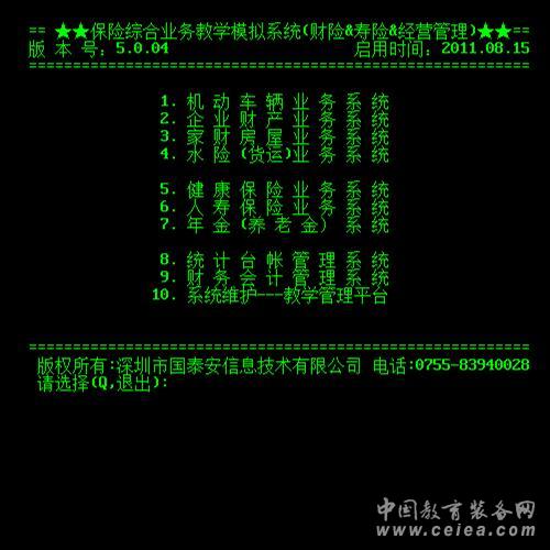 該系統分為財產保險模擬教學系統、人壽保險模擬教學系統、臺賬及財務會計管理三大模塊。其包含了目前典型的機動車險、企業財險、家庭財險、水險、健康險、養老保險、人壽保險、統計臺賬、財務會計等多種業務。
