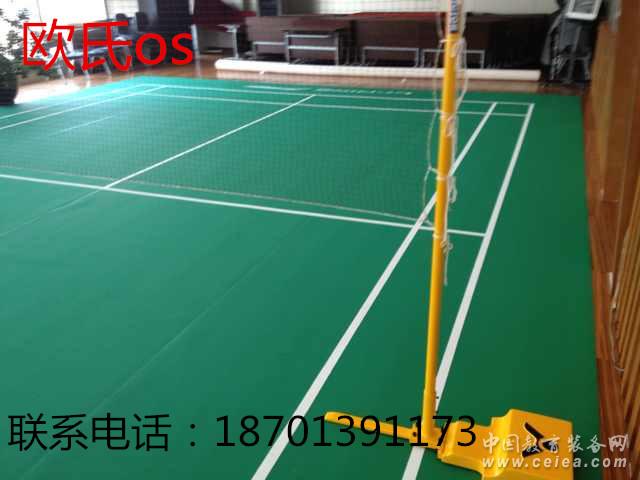 產品詳細介紹OS(歐氏)羽毛球訓練用地板穩定性 羽毛球場地膠產品結構中添加了1000D的玻璃纖維補強網和特殊網格布纖維加強層,保證了本產品在運動過程中尺寸的穩定性及牢固性,并起到了自動補強作用。