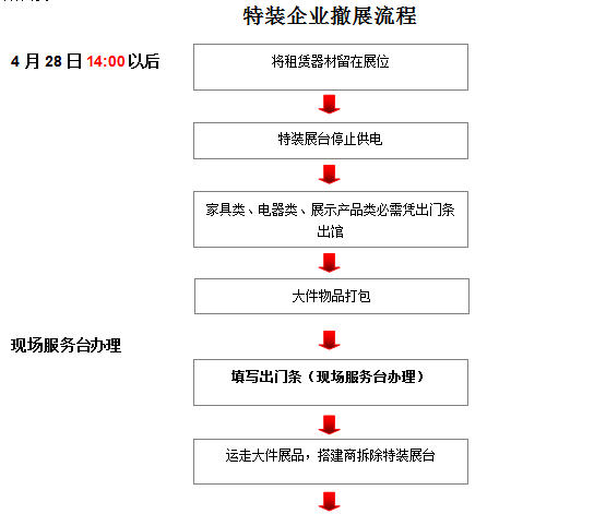 -展會期間,所有成箱的物品出門(包含展品和其他物品)必須先到“現(xiàn)場服務(wù)處”開具“出門單”。