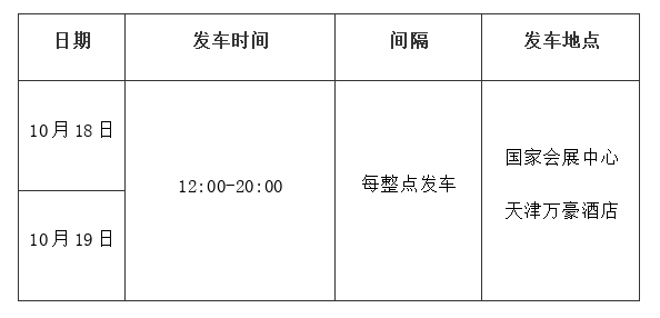 線路2:國家會展中心天津萬豪酒店→天津津園賓館→科技工作者之家→國家會展中心天津萬豪酒店(循環接駁)